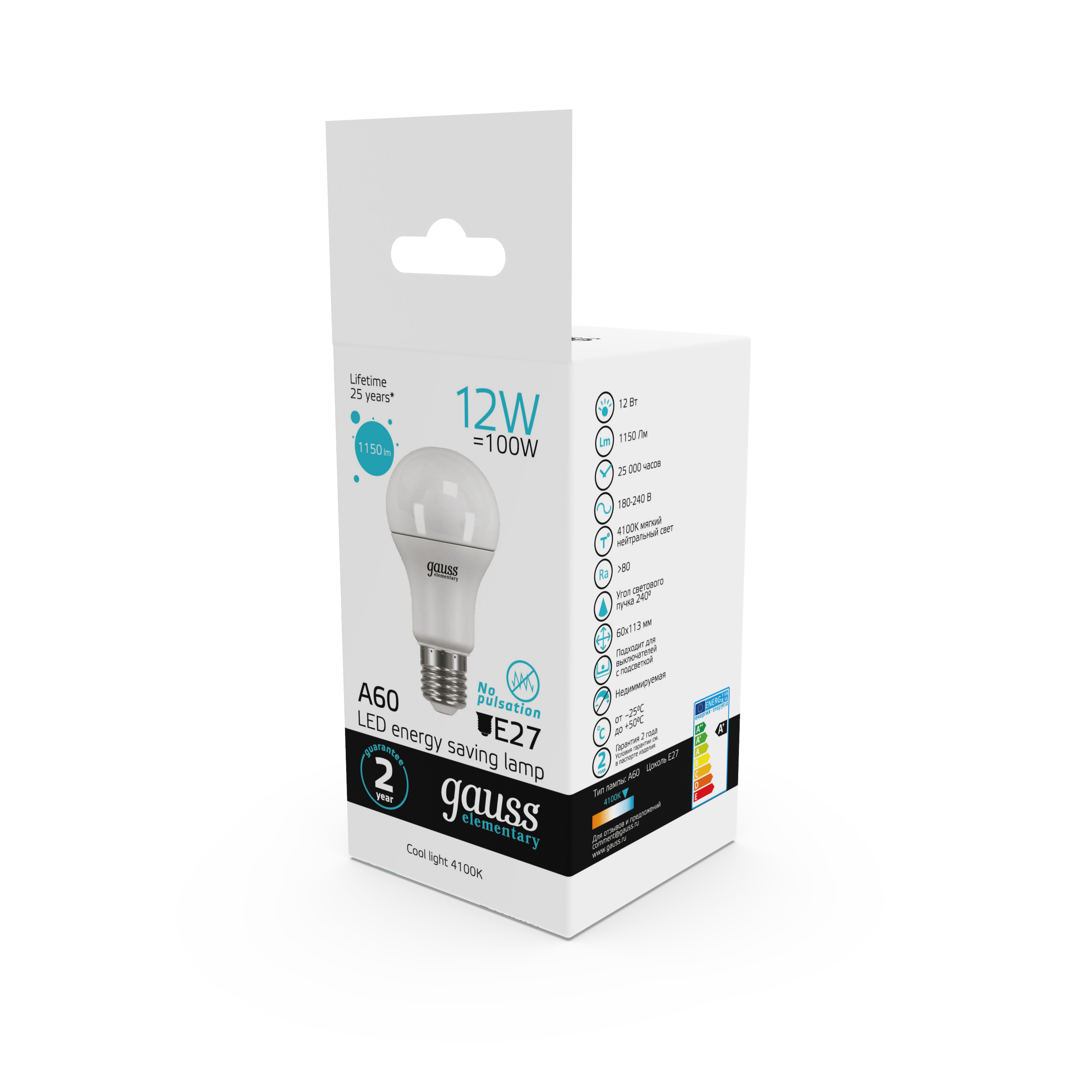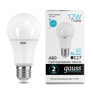 Лампа Gauss Elementary A60 наполнит комнаты мягким освещением для продуктивной деятельности. Светлый тон температурой в 4100K создает атмосферу самого начала хорошего солнечного дня.