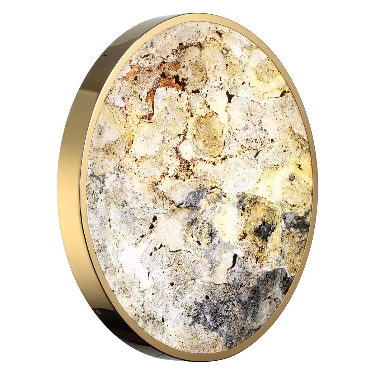 Наряду с моделями с лампой Е27 в линии Bergi есть светодиодные светильники — настенно-потолочные светильники диаметром 300,400,500,600мм, бра, подвес с рассеивателем из натурального природного материала — stone flake — в переводе «каменные хлопья». Тончайший срез (слой) каменной породы наносится на пластиковую подложку для придания формы плафону. Уникальность этого материала в том, что сохраняется красивая природная структура камня с ее неровностями и наслоениями, поэтому поверхность слегка шероховатая. В разных цветовых температурах LED цвет плафона имеет разный оттенок и каждый может выбрать ту цветовую температуру, которая подходит для интерьера. Для удобства выбора цветовой температуры в светильниках есть переключатель с выбором 3000К–4000К–6000К. Светодиодный подвес линии Bergi оснащен шарниром, который позволяет фиксировать различный наклон плафона и создавать красивые композиции.Глянцевый отблеск золотого  цвета  арматуры придает особый шик коллекции Bergi gold и позволяет разместить светильники в люкс