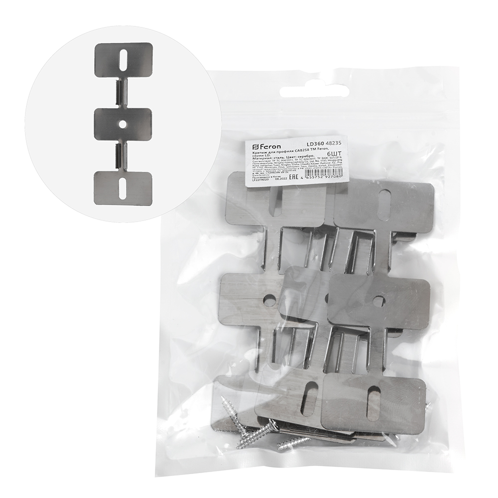 Крепеж для профиля FERON LD360 «накладной», цвет серебро, 89*5*34мм