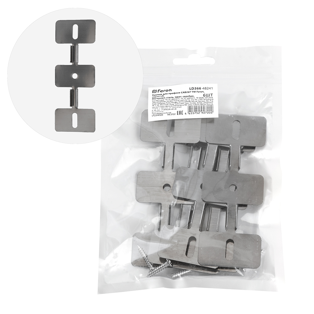 Крепеж для профиля FERON LD366 «накладной/подвесной», цвет серебро, 89*5*34мм