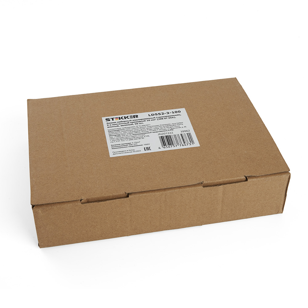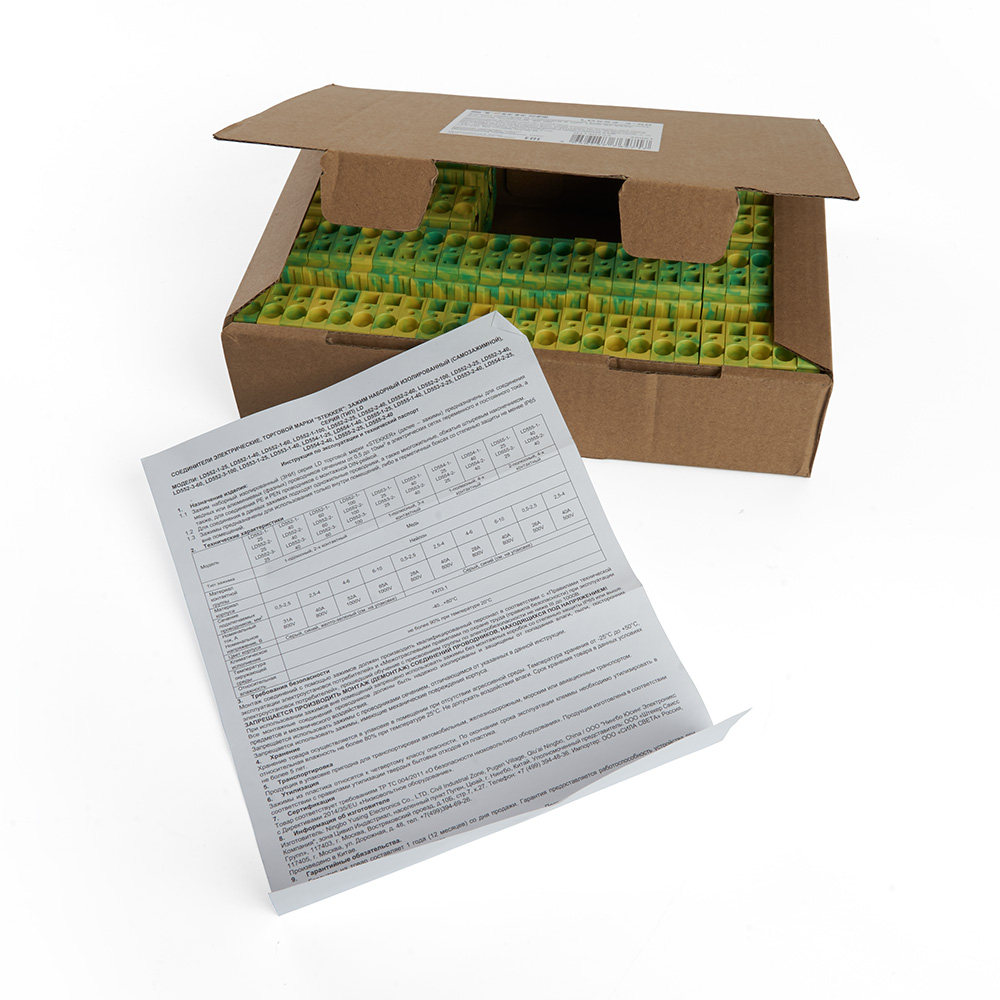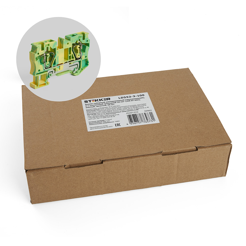 LD552-3-100 ЗНИ Зажим пружинный, 2-проводной проходной 10,0 мм² (JXB ST 10), желтый, зеленый