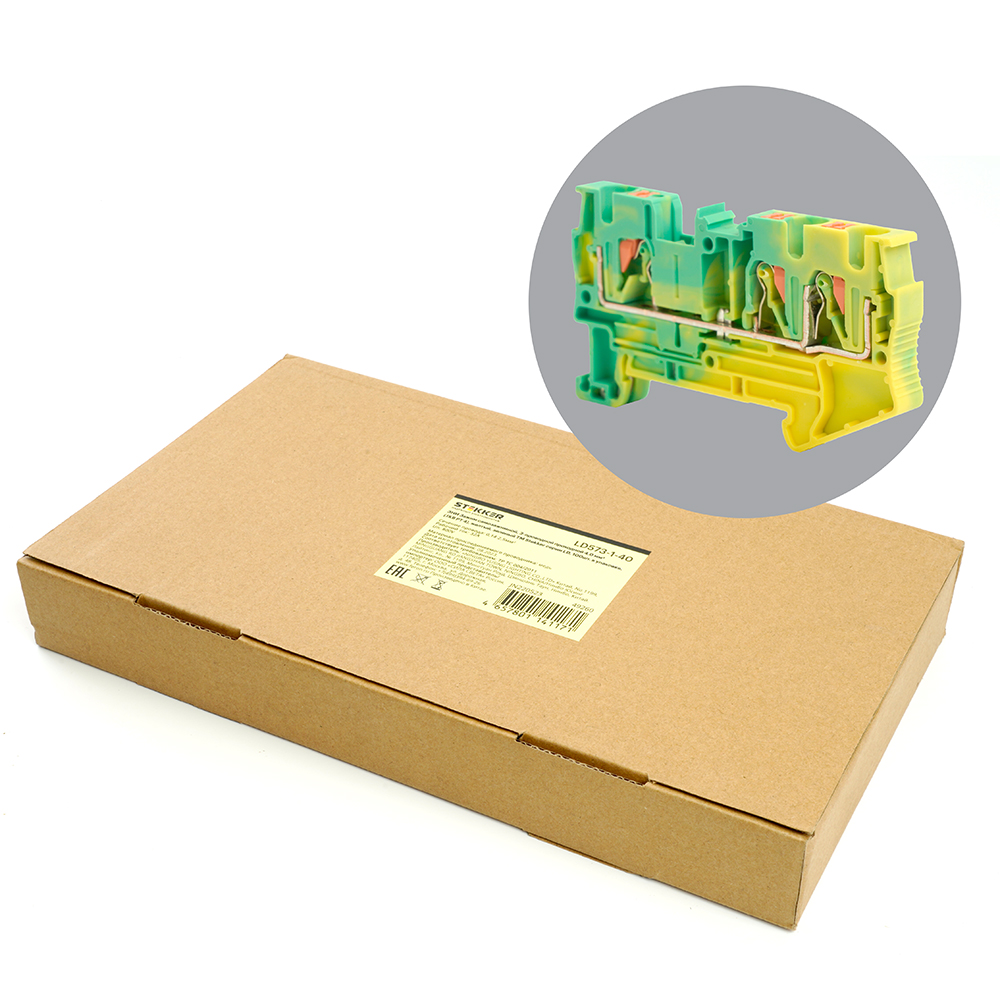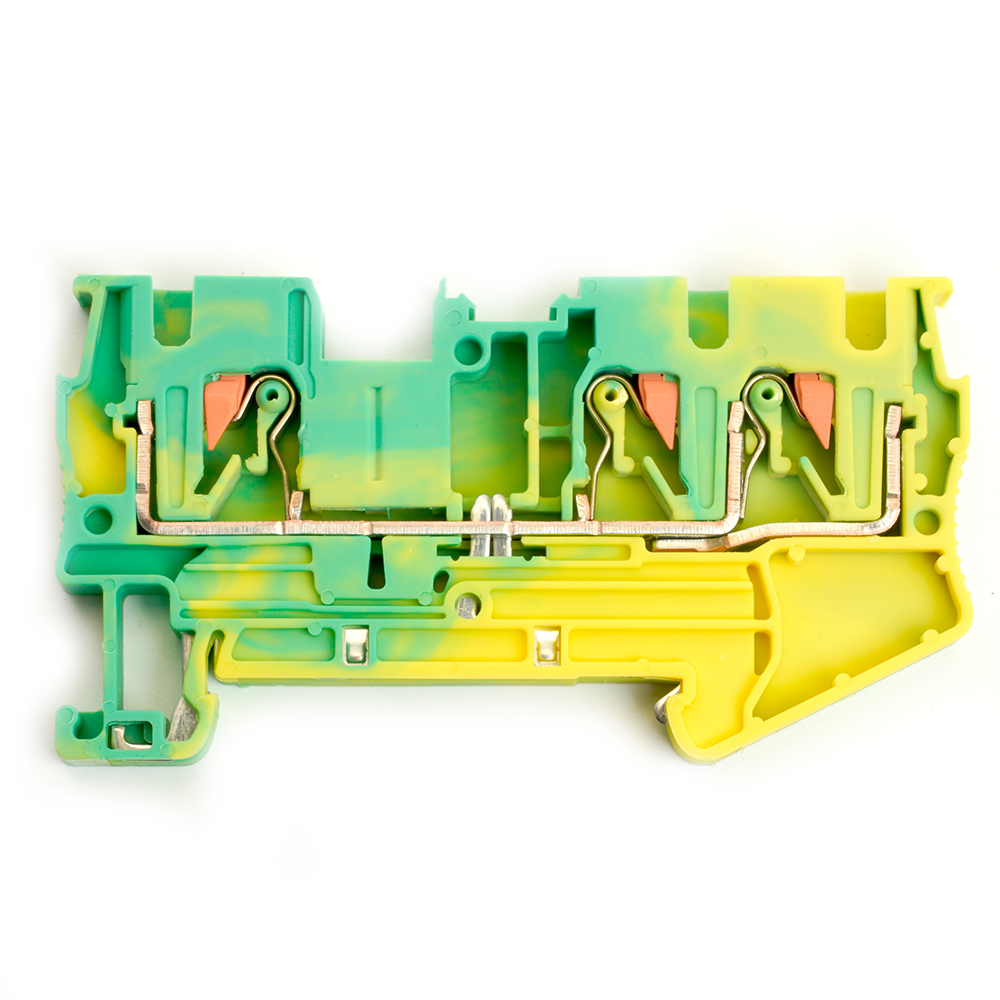 LD573-1-40 ЗНИ Зажим самозажимной, 3-проводной проходной 4,0 мм² (JXB PT 4), желтый, зеленый