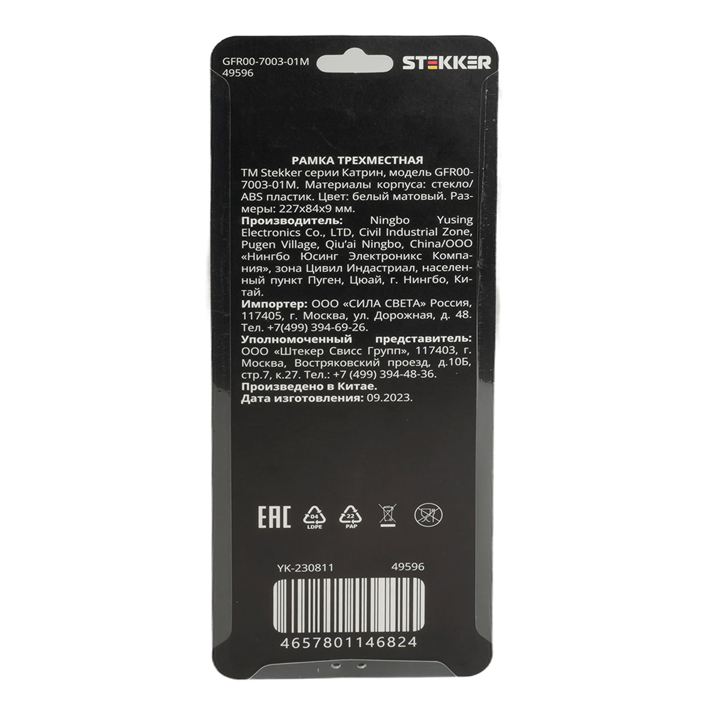 Рамка STEKKER GFR00-7003-01M на гнездо, , . Материал: Стекло/ABS пластик, цвет белый матовый, размер 227*84*9мм. Номинальное напряжение , номинальный ток , диапазон рабочих температур ,
