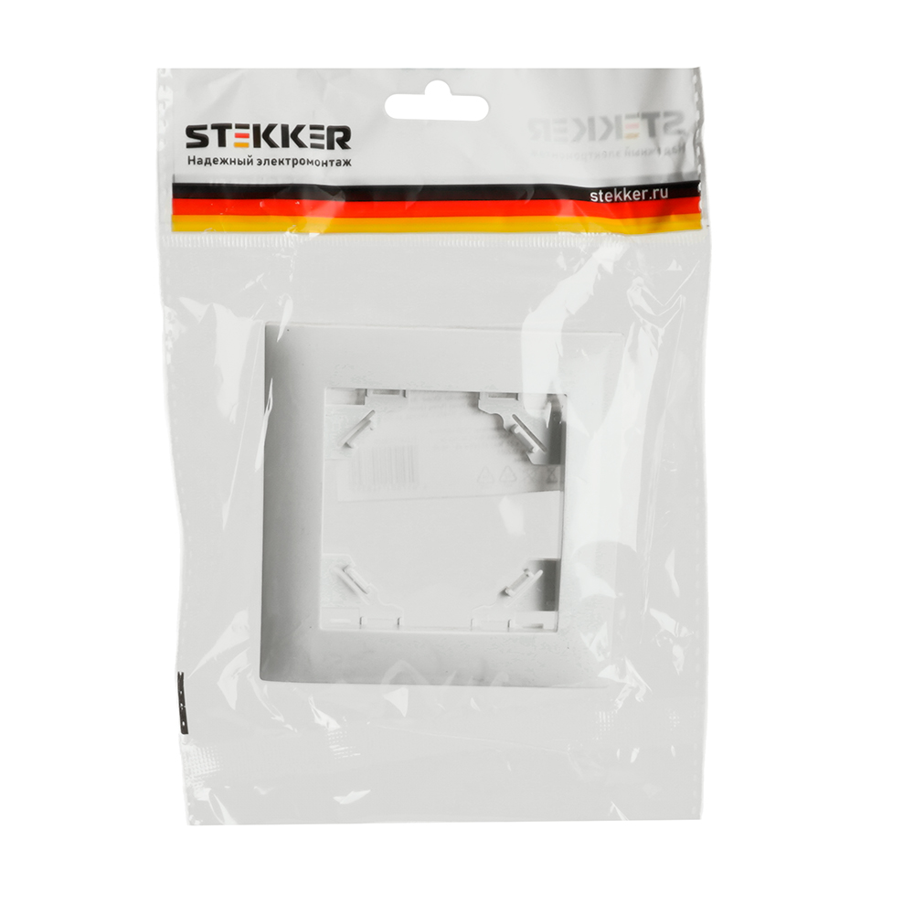 Рамка  STEKKER PFR00-9011-01 на  гнездо, , . Материал: ABS пластик, цвет белый, размер 83*83*11мм. Номинальное напряжение , номинальный ток , диапазон рабочих температур ,