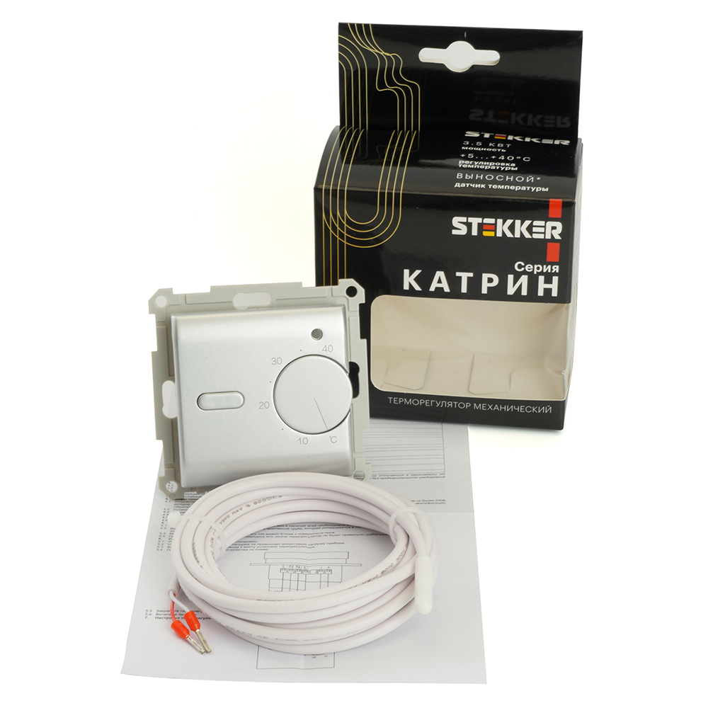 Терморегулятор механический STEKKER GLS00-7117-03, серия Катрин, с подсветкой (красный/синий), тип установки - скрытый, размер изделия 73*73*50мм., цвет серебро, материал изделия поликарбонат, латунь. Номинальное напряжение 250 , номинальный ток 16А, IP20