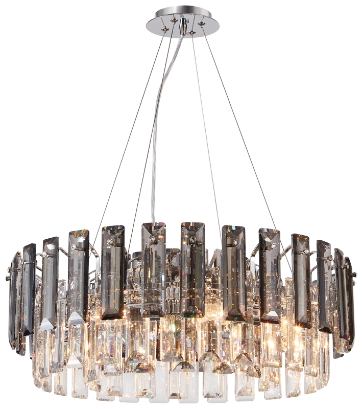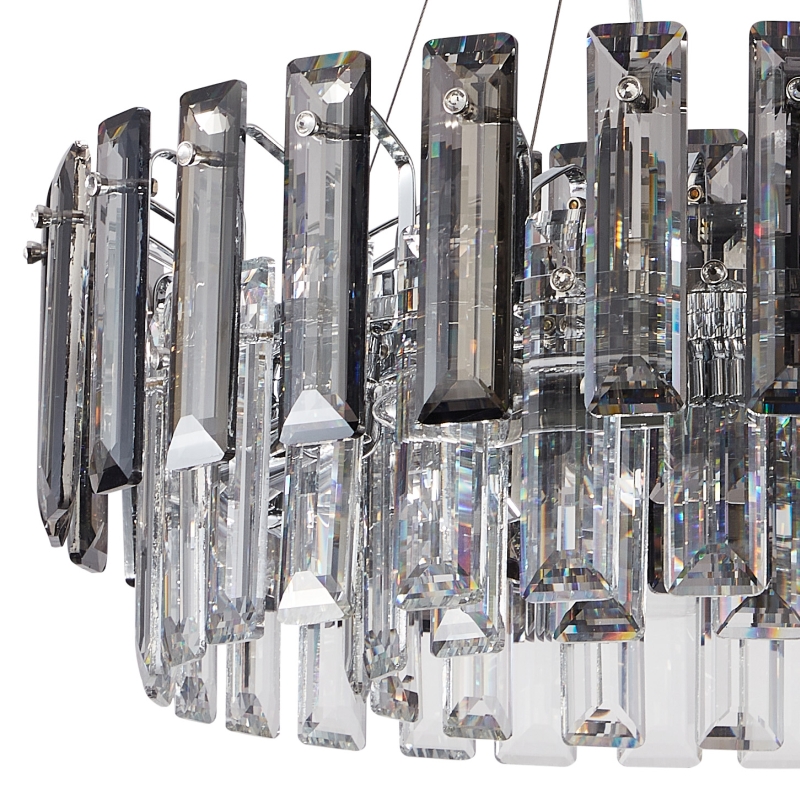 Люстра подвесная из коллекции Ton / Тон выполнена из металла, гальванизированного в цвет хрома, и декорирована прозрачным и дымчатым хрусталем высшей категории прямоугольной формы. Люстра выглядит респектабельно и современно.