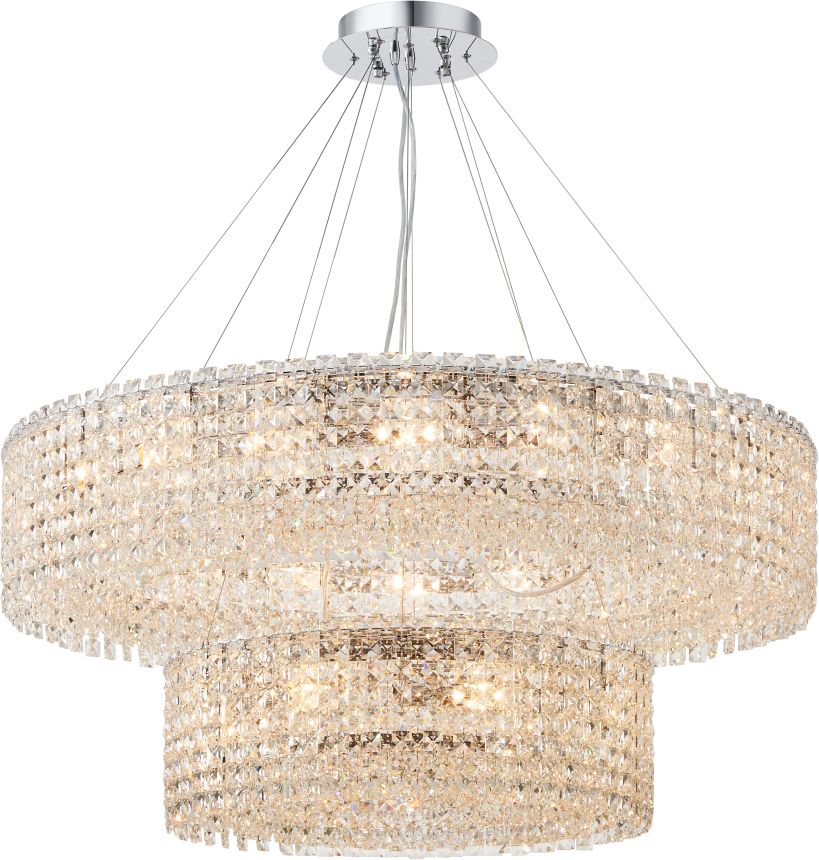 Люстра подвесная из коллекции Delone / Делон выполнена из металла, гальванизированного в цвет хрома, и декорирована подвесками из прозрачного хрусталя в форме октагон. Светильники коллекции отличает оригинальный дизайн и дополнительный декор из хрусталя, закрывающий источники света снизу. Современная форма и высокое качество светильников идеально подойдут как в классические, так и современные интерьеры. Из данной коллекции светильников можно сделать индивидуальный заказ любого цвета и размера.