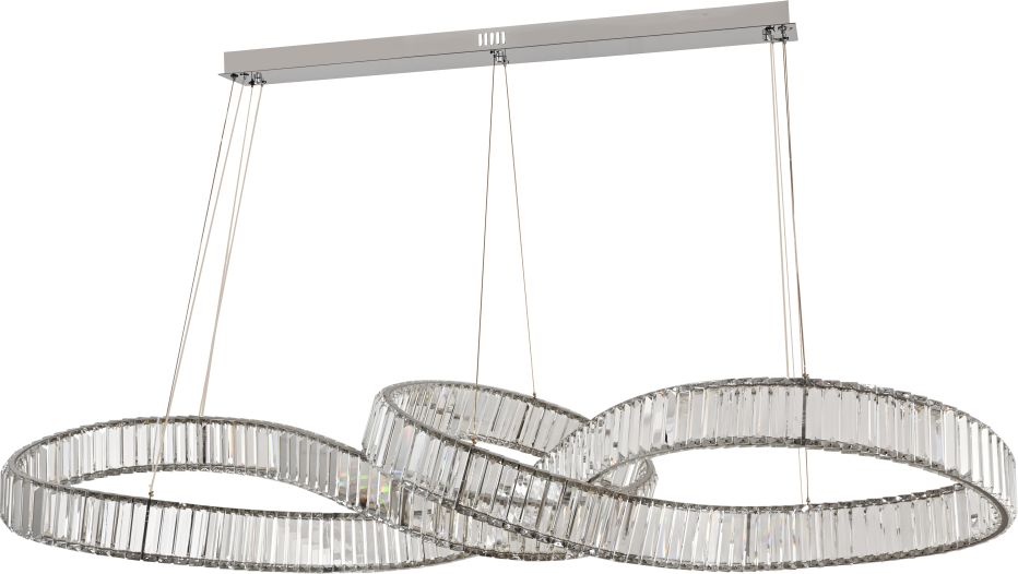 Люстра подвесная вытянутой формы коллекции Vintage / Винтаж выполнена из металла хромированного цвета и декорирована текстурным хрусталем высшей категории. Светильник идеально подойдет для освещения пространства над столом. Модель комплектуется пультом дистанционного управления 2,4G и драйвером высокого качества европейского стандарта T?V. Пульт дистанционного управления обеспечивает переключение трех режимов световой температуры и диммирование. Современная форма и высокое качество светильников идеально подои?дут как в классические, так и современные дизайнерские интерьеры. Из данной коллекции светильников можно сделать индивидуальный заказ любого цвета и размера.